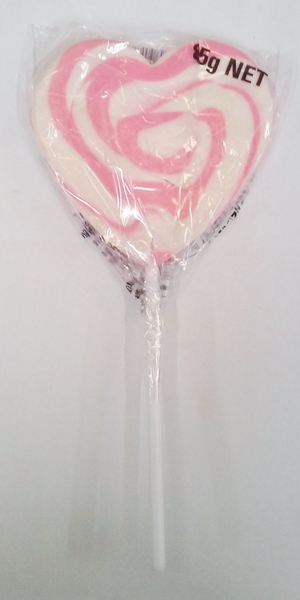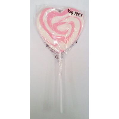 Large pink swirl heart pop lollipops. Lollipops measure approx. 21cm in total height (incl. stick.) Confectionery part of lollipops measures approx. 9cm x 9cm. 24 lollipops in a pack.