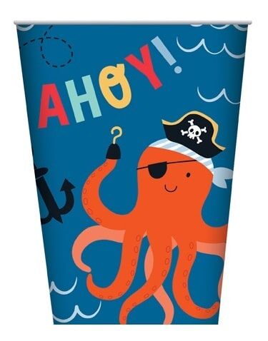 Set a fun party table with these delightful cups - your guests are sure to love the fun design featuring a pirate shark & octopus!