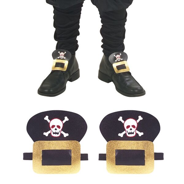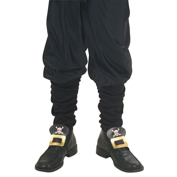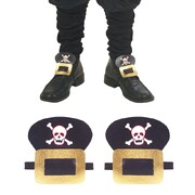 Add a bold pirate twist to your costume with these PVC shoe buckles featuring a skull & crossbones decal - perfect for transforming plain shoes into swashbuckling footwear in seconds!