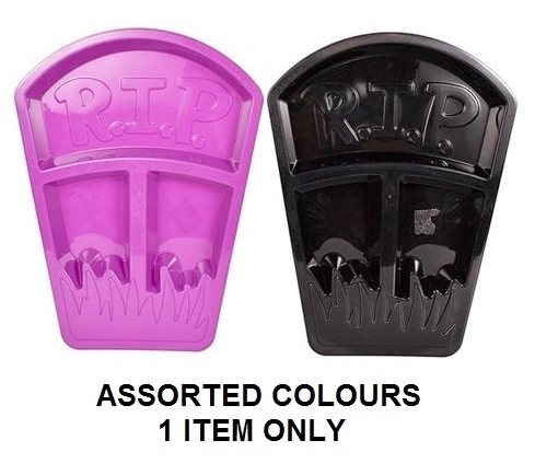 Made from black or purple moulded plastic, this fun treat tray is shaped like a headstone and features 3 separate compartments for your spooky nibblies.