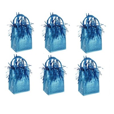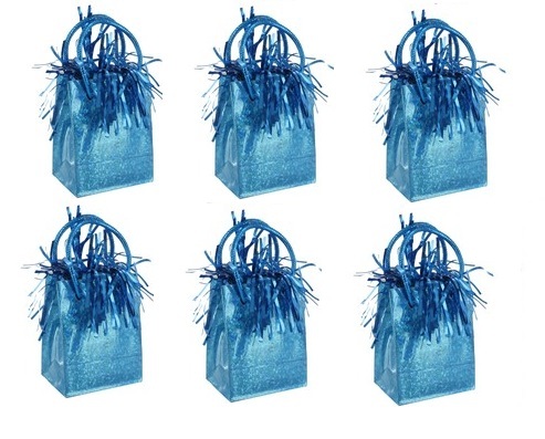 This 6 pack of light blue giftbag shaped balloon weights is perfect for any party! Used for the weighing down of helium balloon arrangements, they can also be used as a table decoration with picks! Each weight can hold down approximately 10 x 28cm latex balloons.