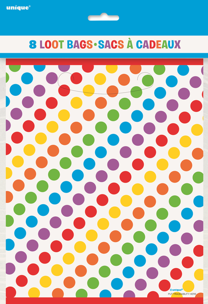 Give out treats in style with these vibrant rainbow plastic loot bags.