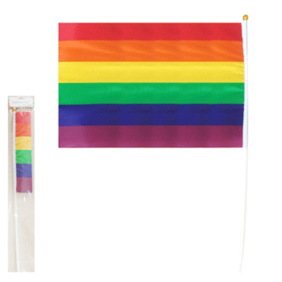Rainbow flag waver, perfect for heaps of different occasions! Flag measures approx. 30cm x 45cm. Pole that flag is on measures approx. 60cm in length.