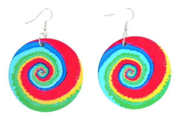 The large circles of rainbow tie-dye coloured plastic will make an instant glam statement - with a diameter of 5cm you can't miss them!