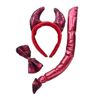 This 3 piece set has all the accessories you need for your devil or demon costume - headband with horns, bowtie and tail.