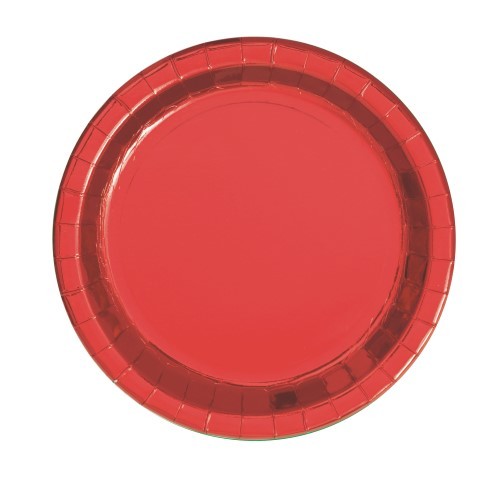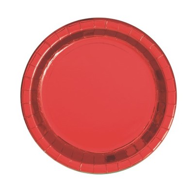 Pack of 8 red foil paper plates. Each plate measures approx. 7in. (17cm) in diameter.