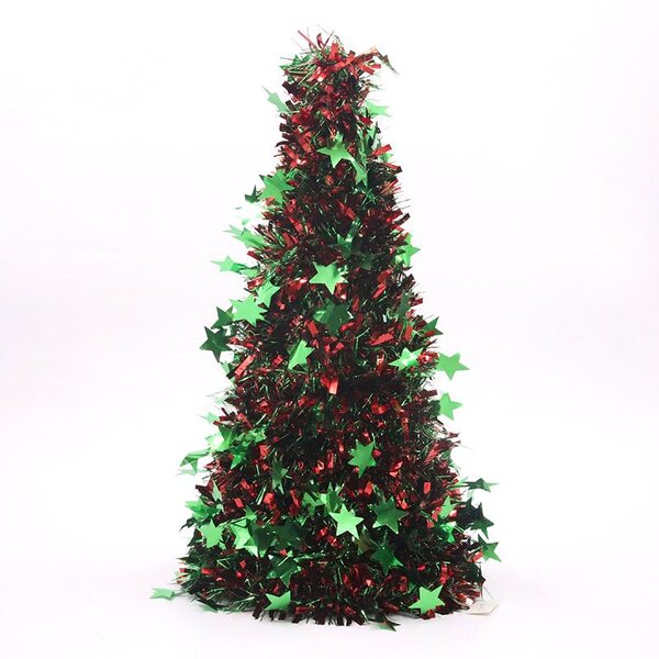 Red & Green Tinsel Christmas Cone Tree with Stars Decoration (48cm)
