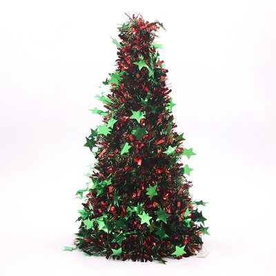 Add a touch of modern charm to your festive decor with this Red & Green Tinsel Christmas Cone Tree with Stars Decoration!