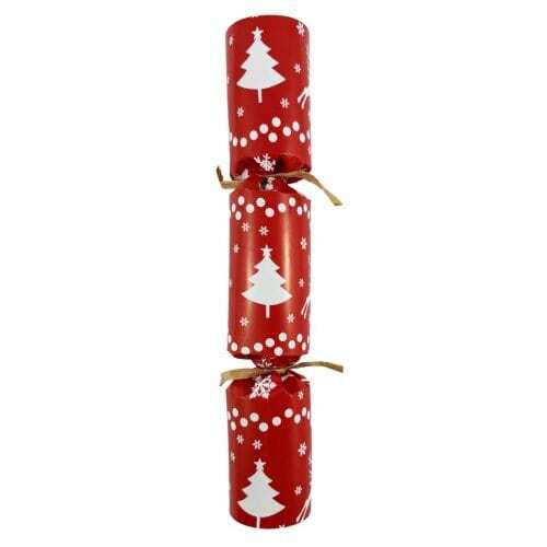 These 10 inch paper bon bons are red & green with trendy Christmas trees printed in white. They are completed with natural rafia ribbon to offer a really eco-friendly Christmas Cracker for your celebrations. They come in an assorted box of 50 crackers.