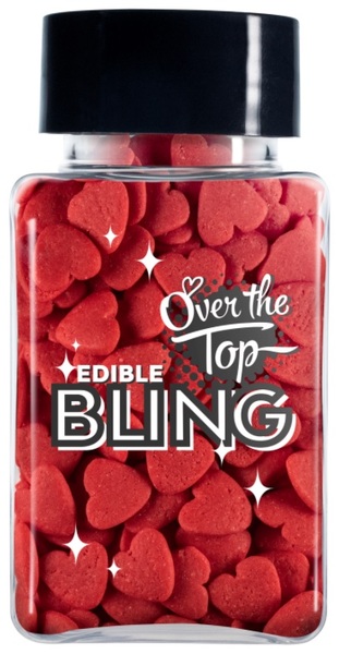 55 gram jar of edible read heart confetti sprinkles, perfect for adding to cakes and cupcakes!