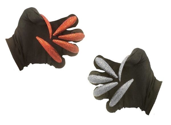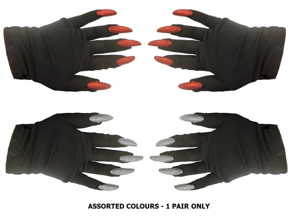 These versatile wrist length gloves are made from black stretch fabric and feature long glitter nails glued onto each fingertip - the nails are an impressive 6cm long and are sure to leave a lasting impression - perfect for parties, trick-or-treating or getting into the Halloween spirit!