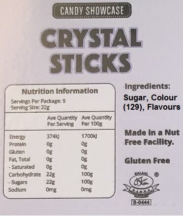 - 5 x 22g red colour with strawberry flavour sugar crystal sticks