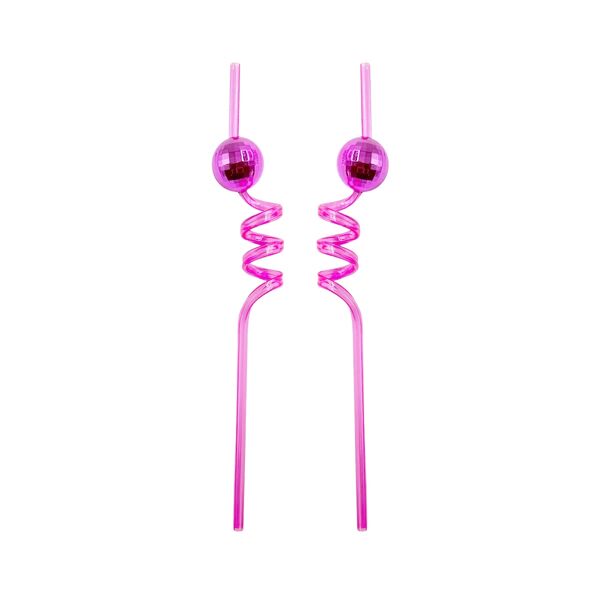They are made from durable pink plastic and feature a fun spiral design and a decorative disco ball attachment.