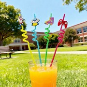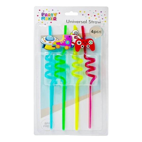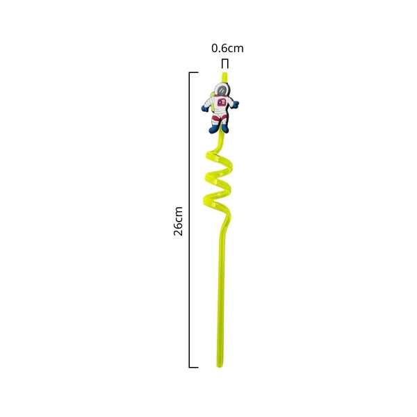 They are made from colourful durable plastic and feature a fun spiral design and a decorative attachment in mixed designs - game controller, rollerskate, UFO & astronaut.