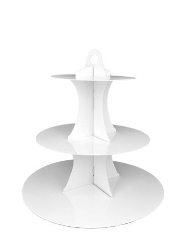 This 3 tier stand measures approx. 32.5cm tall x 30cm diameter and holds approx. 23 standard sized cupcakes.