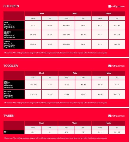 NB: Costume does not include shoes or face paint (chocolate smudges in image.) 100% polyester (exc. trims.) See sizing chart in images for more sizing information.