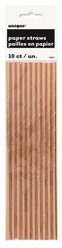 Pack of 10 rose gold foil paper straws, each measuring approx. 21cm in length.
