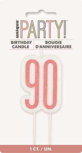 Rose gold glittery #90 cake candle - perfect for a birthday party! Candle measures approx. 4cm x 7cm (1cm in thickness), not including the spikes on the bottom. Spikes measure approx. 2cm in length. Colours/design may vary from image.