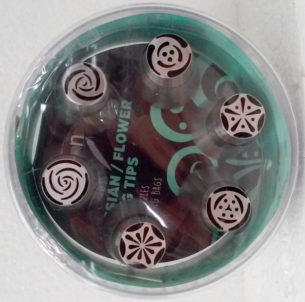 Set of Russian / flower piping tips and bags - perfect for any cake-maker looking to make some impressive icing flowers! Set includes 6 nozzles (1, 5, 10, 12, 13, 14) and 4 piping bags. Simply use the tips and bags as you would any other tips and bags, and you'll be creating amazing icing flowers in no time!