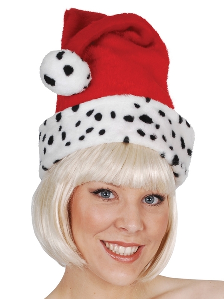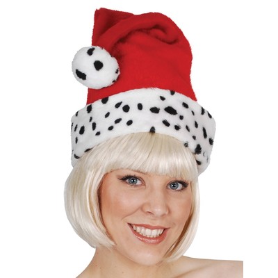 Have fun celebrating the silly season with this wonderful Santa hat! With a dalmation patterned trim, and fitting most sized heads, this hat will definitely put everyone at your Christmas celebration in the festive spirit!