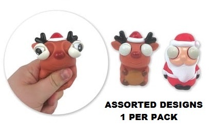 Cute Santa or reindeer with big eyes - give them a gentle squeeze to hear popping sounds and see the eyes spring out and open up.