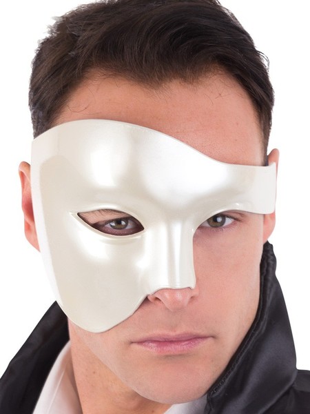 This phantom of the opera inspired Maestro mask is made from a moulded plaster that is very light weight. The mask itself is a shiny cream colour. This mask is a one size fits all item based on adult sizing and simply ties up at the back. Perfect for any Masquerade ball or party!