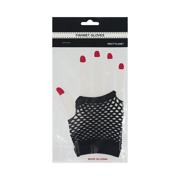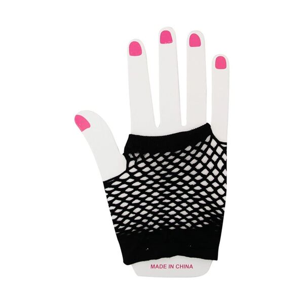 These gloves are made from synthetic black fishnet fabric and will stretch to fit most adults.