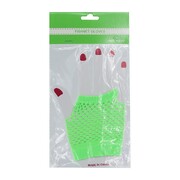 These gloves are made from synthetic green fishnet fabric and will stretch to fit most adults.