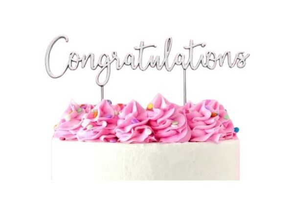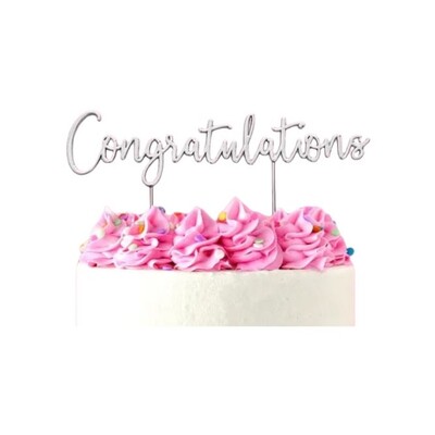 Measuring an impressive 13.5cm wide, this topper is made from metal and features 'Congratulations' wording in a delicate cursive font.