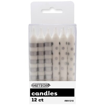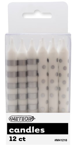 These 8cm Silver dots & stripes (6 with a stripe pattern and 6 with a dot pattern) are perfect for any party and easily coordinated with our coloured tableware for your complete party decorating needs!