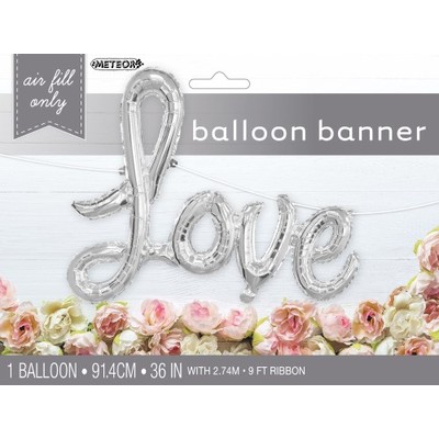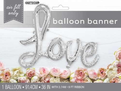 This foil balloon banner kit is perfect for heaps of different occasions! Kit includes: 1 x word balloon with attached letters (Love, measuring approx. 91.4cm), ribbon (measuring approx. 2.74m) and 1 plastic straw for inflation. Instructions for assembly included.