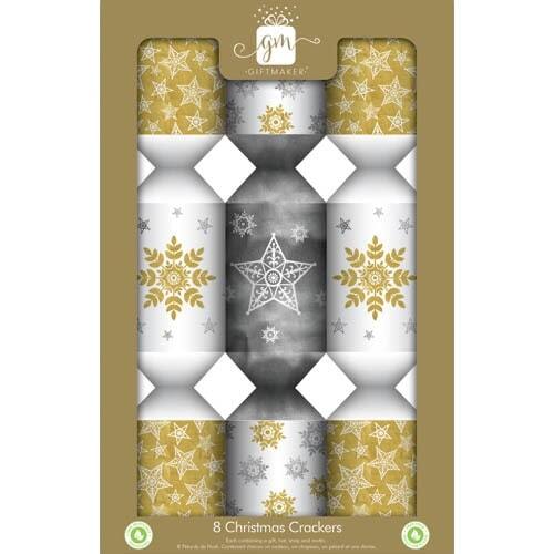 These large gold, silver & white bon bons offer a stunning accent for your festive tables. They are printed with elegant star & snowflake designs and finished off with gold curling ribbon to create a wonderful sense of festive cheer.