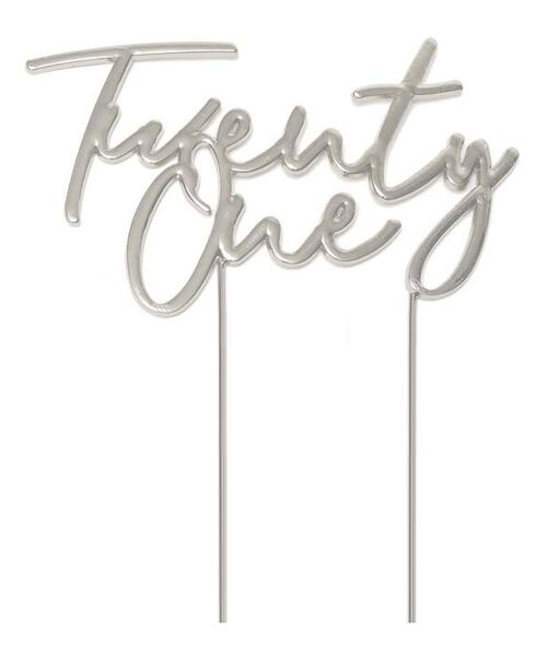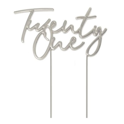 Measuring 10cm wide, this topper is made from metal and features 'Twenty One' wording in a delicate cursive font.