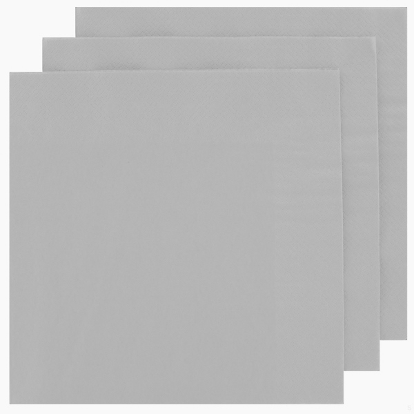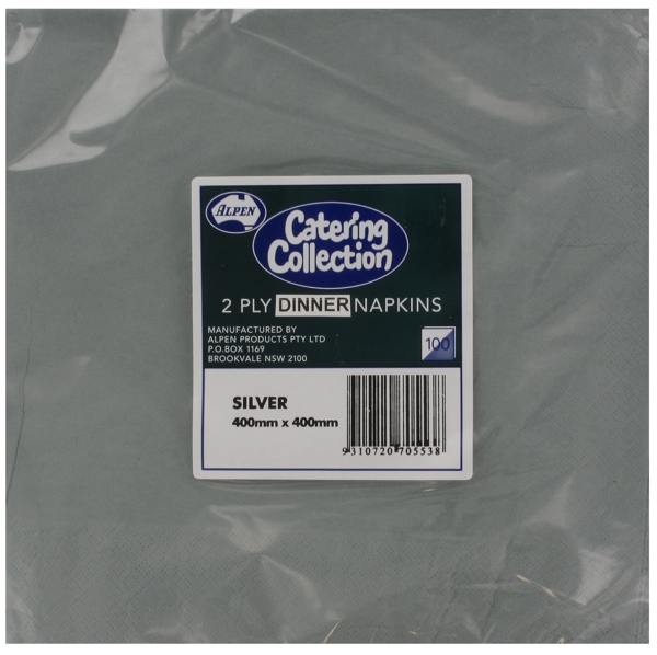Pack 100 premium silver 2 ply dinner party napkins (40x40cm) suitable for the largest meal. Colour coordinated to match plastic tableware.