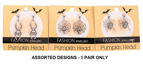 The earrings are made from silver metal and feature assorted spider designs such as spider with skull, spider in a web and tarantulas.