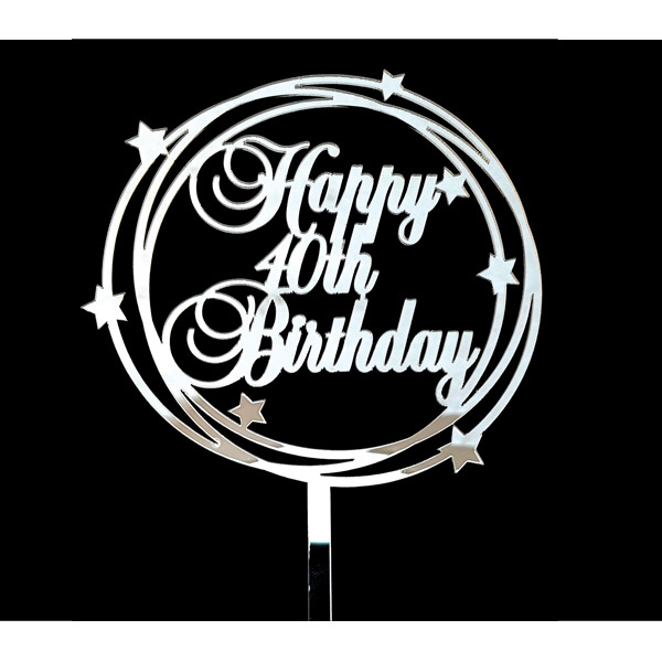 This silver acrylic 'Happy 40th Birthday' cake topper is the perfect finishing touch for that special cake!