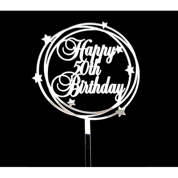This silver acrylic 'Happy 50th Birthday' cake topper is the perfect finishing touch for that special cake!