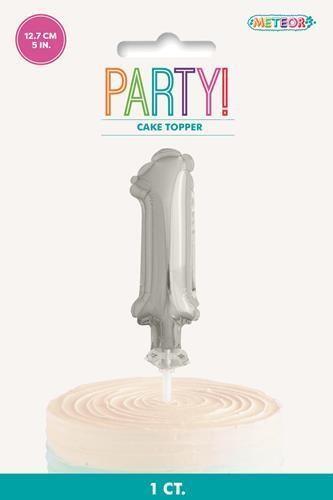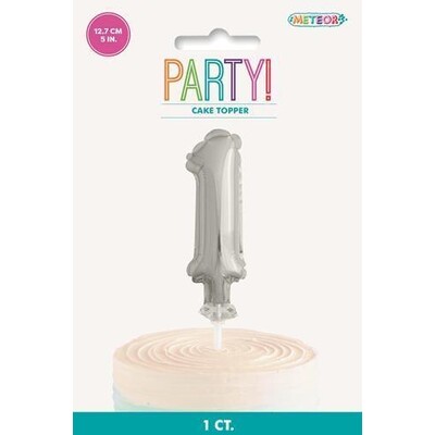 Silver number 1 balloon cake topper, perfect for putting on top of a birthday cake! Inflation instructions and stick to attach balloon to included in pack. Stick measures approx. 6.5cm in length and balloon (once inflated and attached to stick) measures approx. 19cm in total height (incl. stick.)