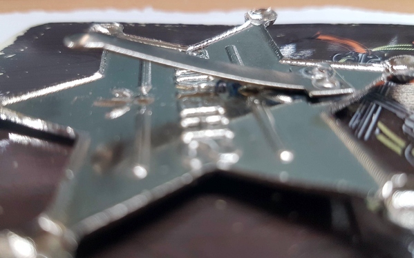 Badge is made from metal and has a clip to attach to the top of a pocket.