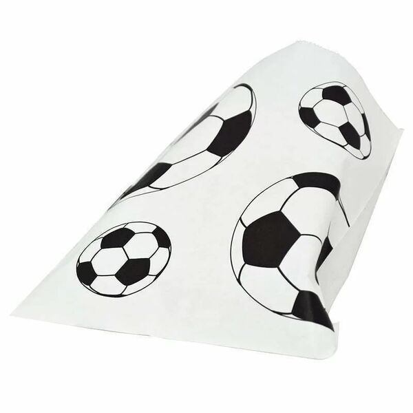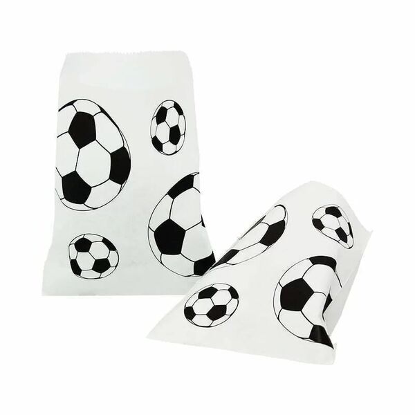 These white paper bags with black soccer ball print are perfect for birthdays, sports parties, end-of-season celebrations and more!