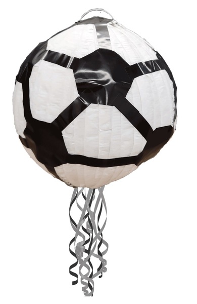 Made from cardboard and decorated with colourful fringed paper, this pinata is perfect for your soccer or sports themed party!