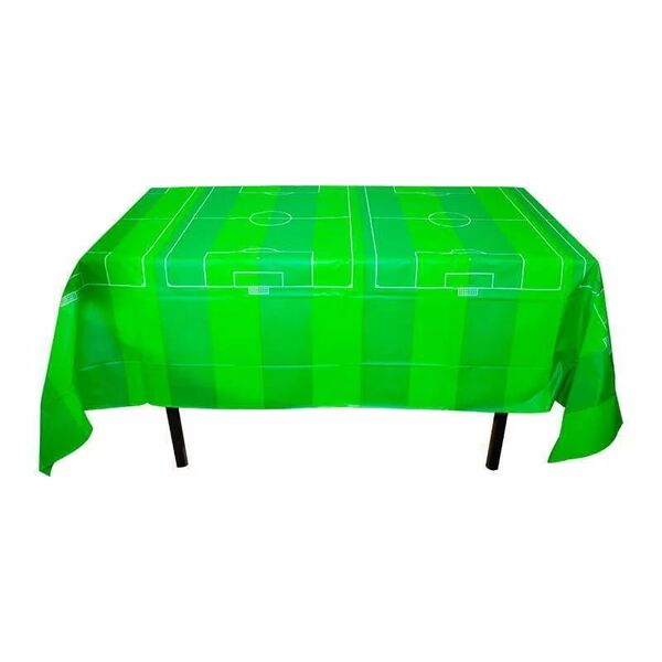Made from sturdy green striped plastic printed with a repeating soccer field outline, this table cover measures approx. 140cm x 200cm and is perfect for your party table, grazing table or lolly table - can also be used as a fun backdrop for party photos!