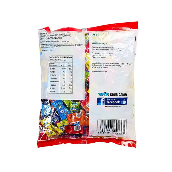 These individually wrapped sour lollies are packed full of juicy fruit flavours - blue raspberry, grape, strawberry, orange, lemon & lime.