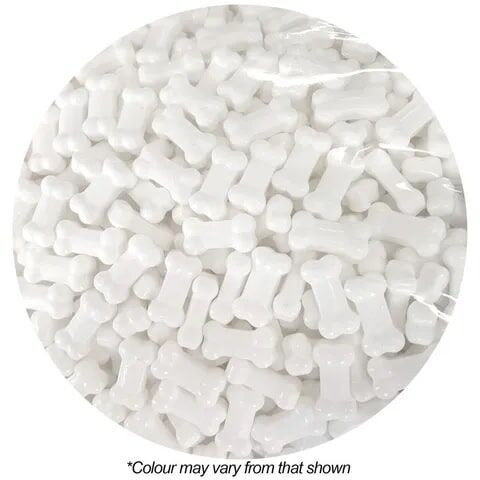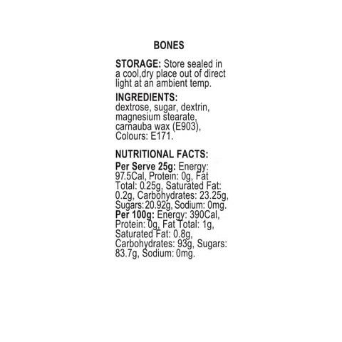 This pack contains a mini white candy bones measuring approx. 16mm x 8mm x 5mm.