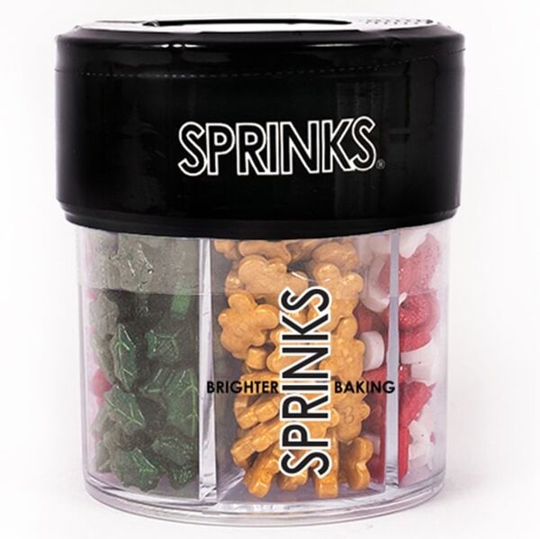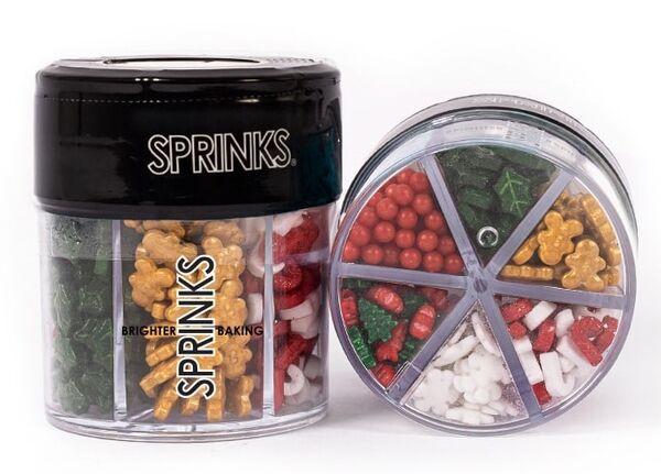This sprinkle mixes feature vibrant colours, whimsical shapes, and sparkling textures, from classic red and green trees to shimmering gold gingerbread men and more!