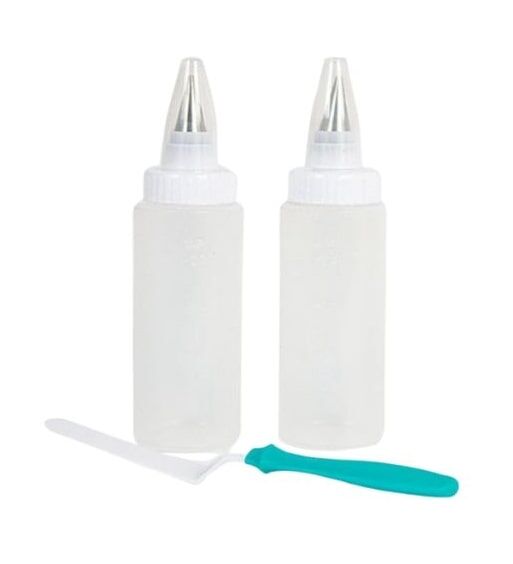 Create works of art with this handy squeeze bottle and spatula set consisting of 2 squeeze bottles and a spatula.