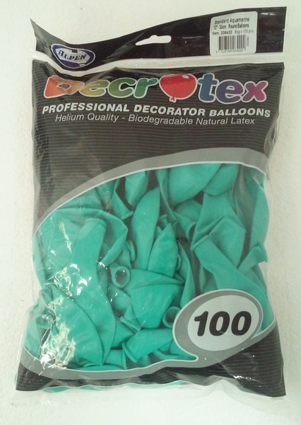 These standard 30cm aquamarine latex balloons are perfect for decorating a party area or putting in a balloon arrangement as a gift! With 100 balloons in a pack, these balloons are helium quality, meaning they can be filled with either helium or air. Balloons should look their best for 10-12 hours, if filled with helium, before coming down.
