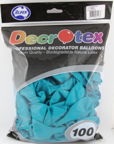 These standard 30cm teal latex balloons are perfect for decorating a party area or putting in a balloon arrangement as a gift! With 100 balloons in a pack, these balloons are helium quality, meaning they can be filled with either helium or air. Balloons should look their best for 10-12 hours, if filled with helium, before coming down.