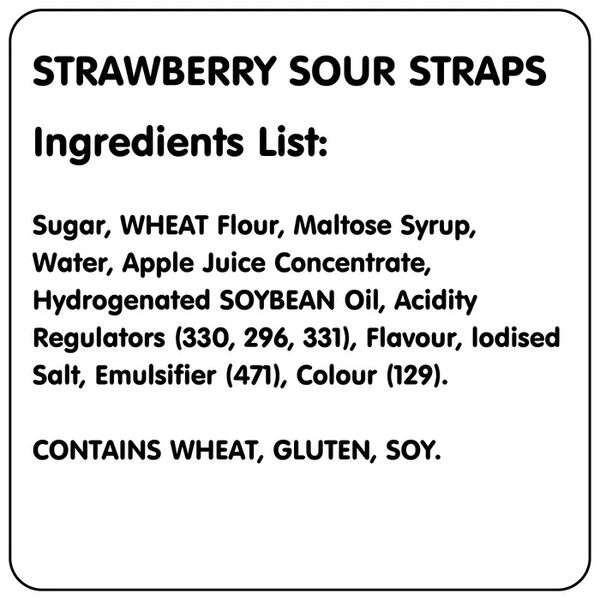 This resealable tub contains 1 kg of red straps bursting with fab strawberry flavour - sour powder on the outside with a sweet centre!