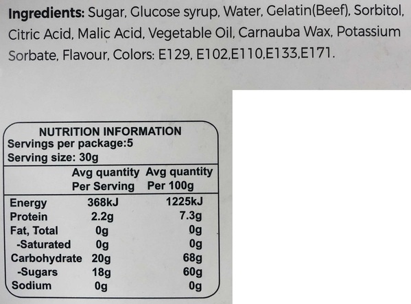 - This item comes in assorted colours and flavours as shown in the image above. When you purchase this item you will receive 1 Gummi Bear. You will receive a colour/flavour depending on what is available at the time. We cannot provide specific colours. When purchasing this product online you acknowledge that you understand these terms. When purchasing more than 1 we will endevour to provide a mixture of colours and flavours depending on availabilty at the time of your order.